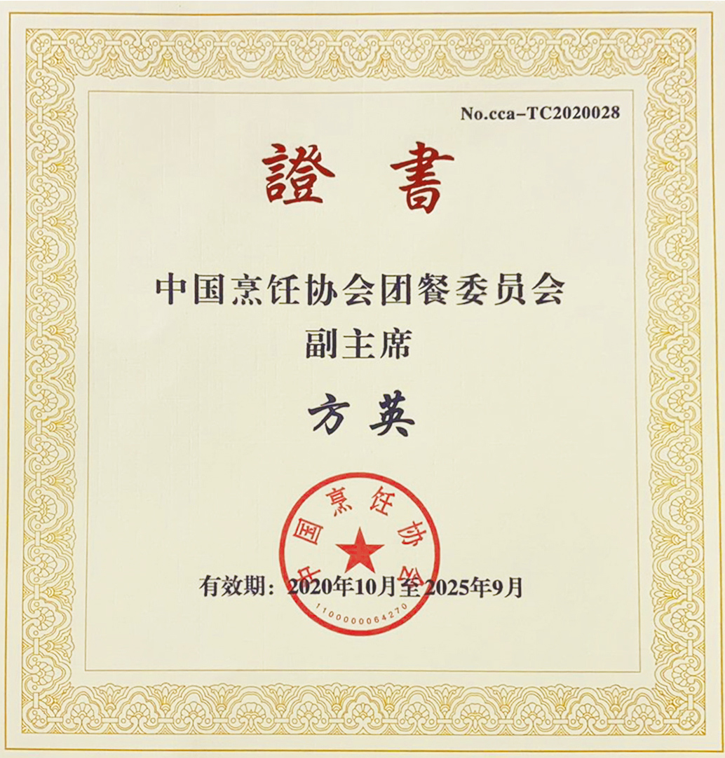 授予方英女士-中國烹飪協(xié)會(huì)團(tuán)餐委員會(huì)副主席